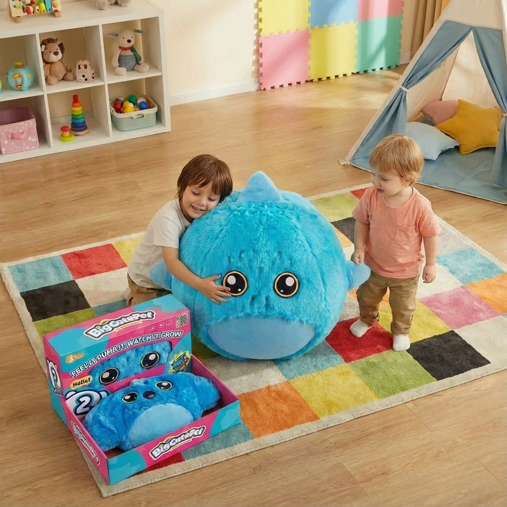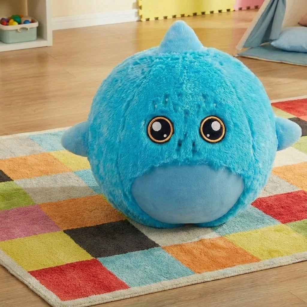 - Soft stuffed animal with inflatable design for lightweight play