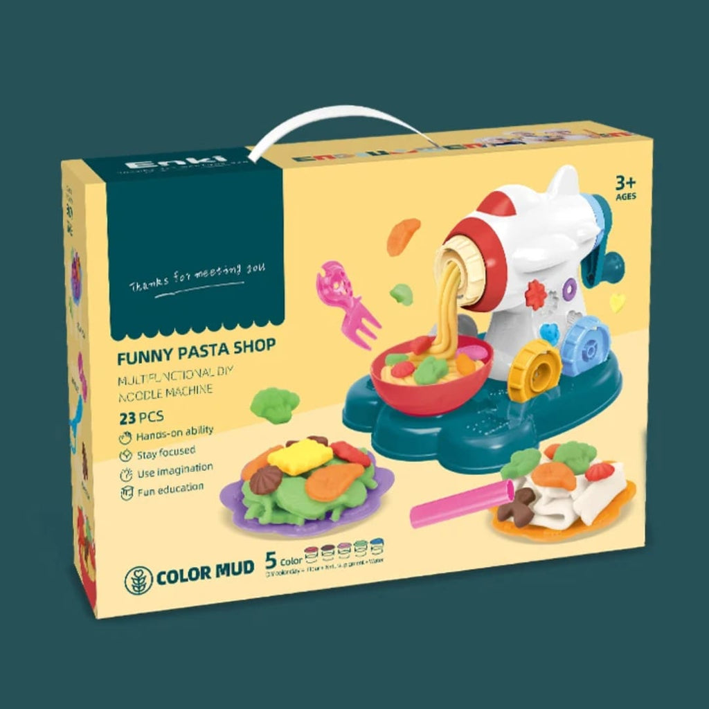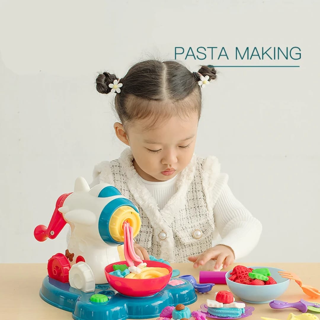 • Kids press and roll dough into spaghetti, macaroni, and flat noodles