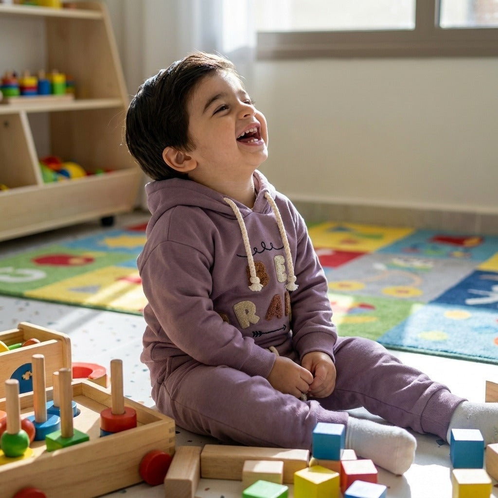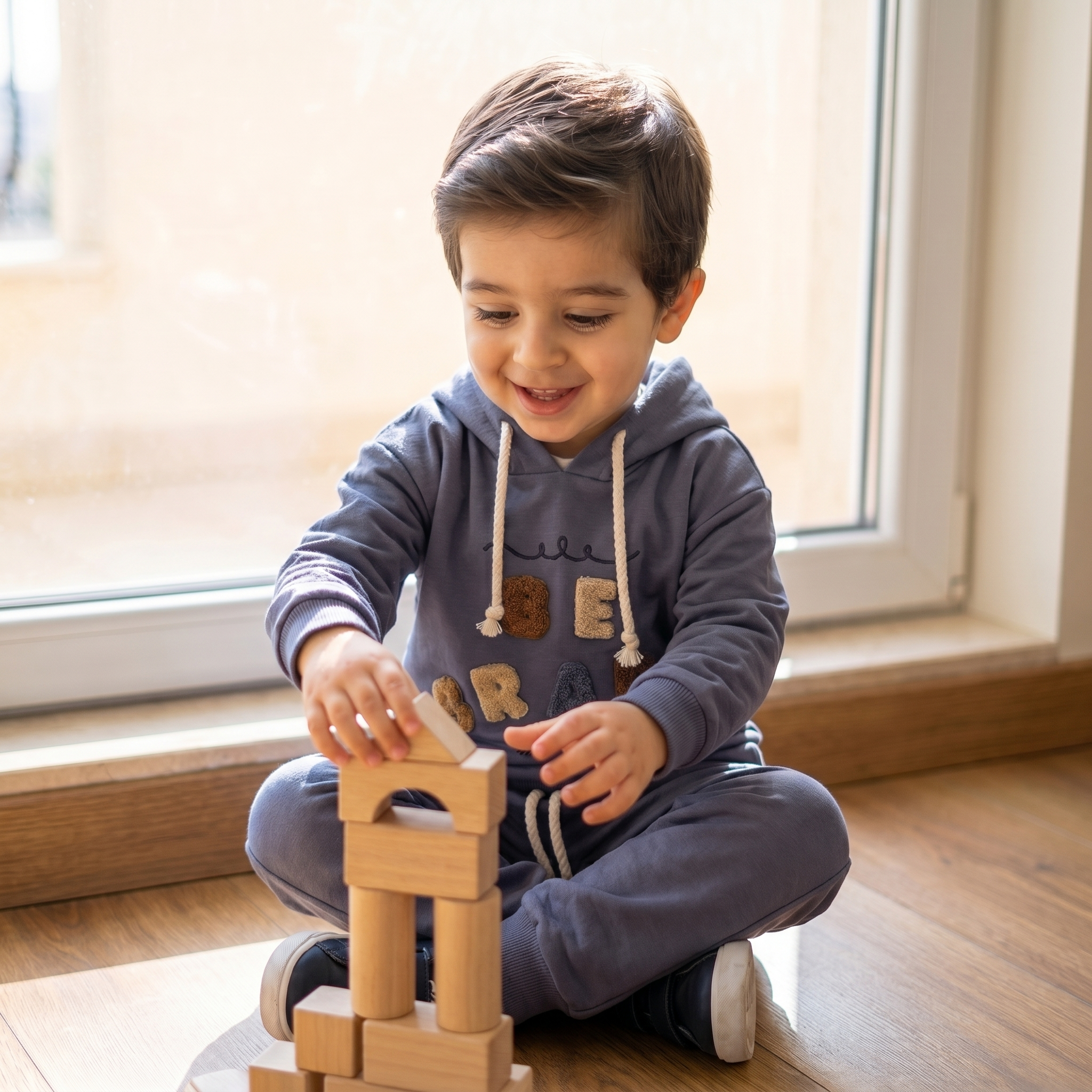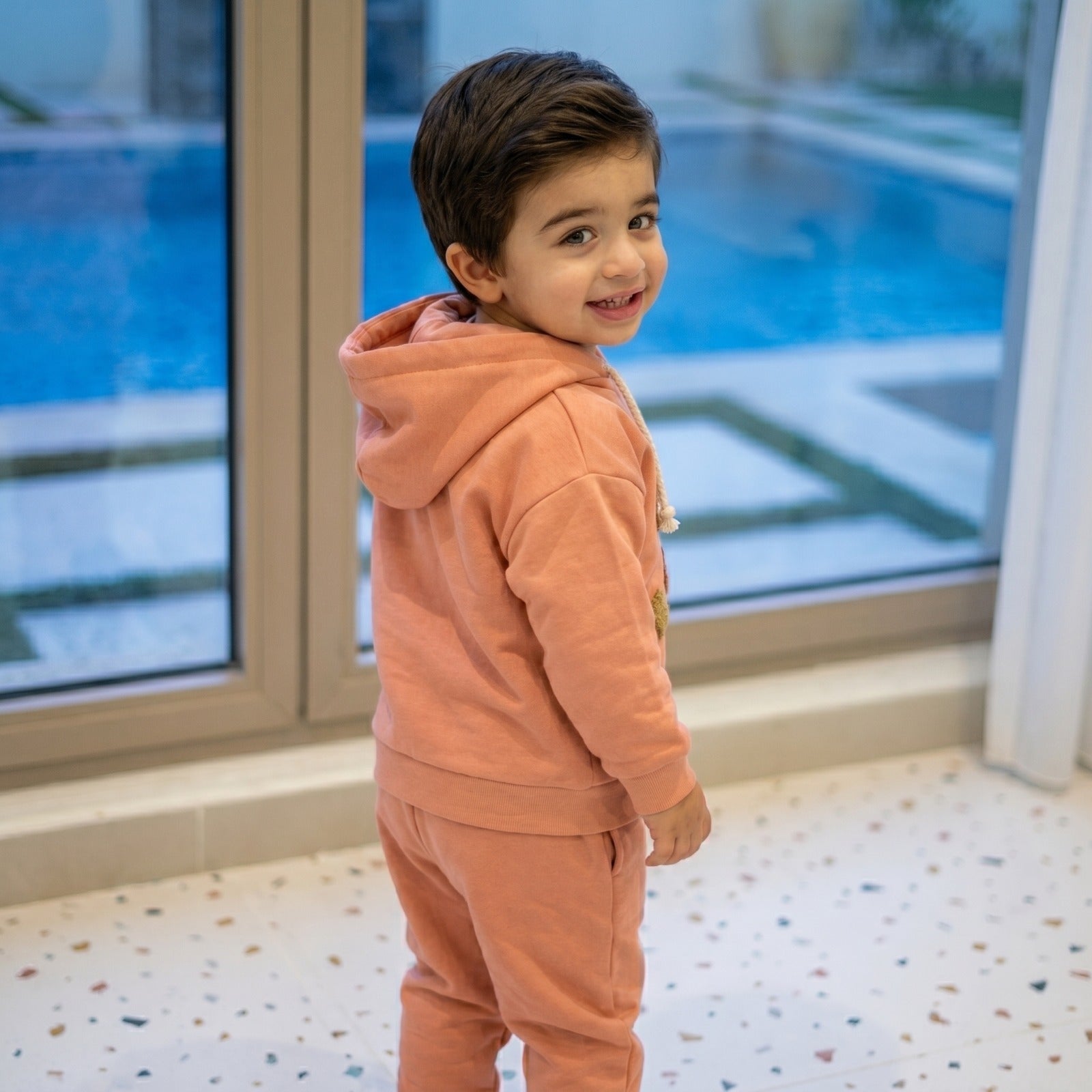 - Cozy hoodie and jogger set with a bold "Be Brave" embroidered lettering